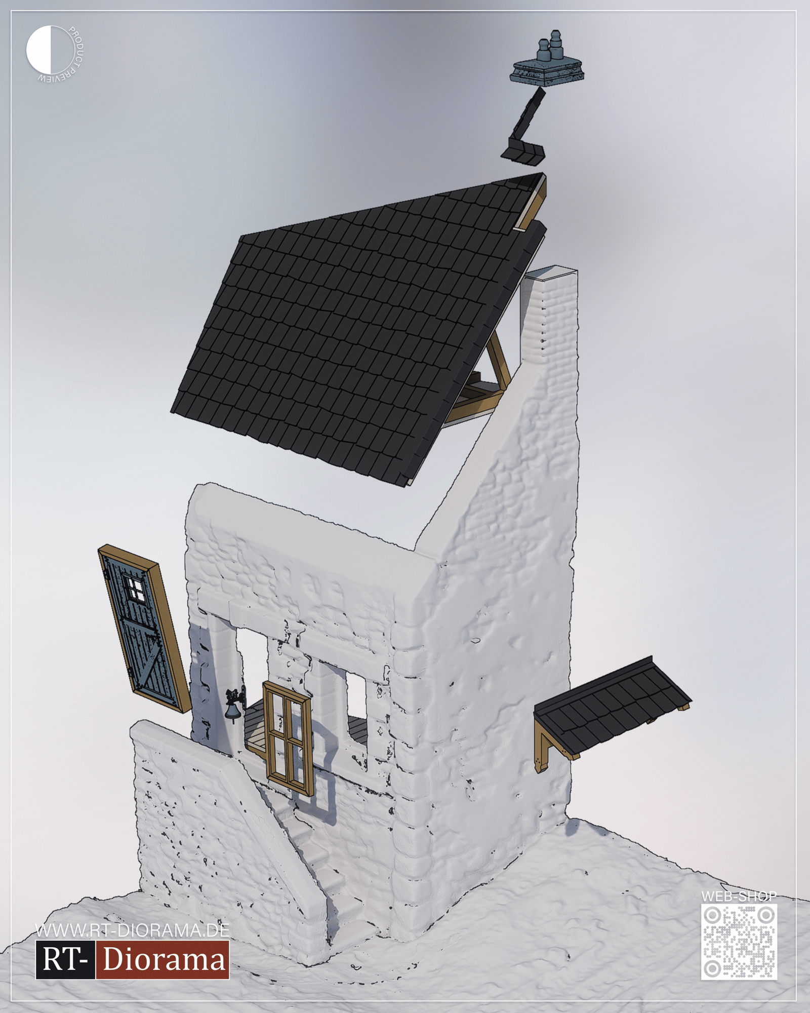 Bring the harsh winter atmosphere of the Western Front to life with the 1/35 Ardennes Forest Diorama Base. This highly detailed scene features a rustic stone house typical of the Ardennes region, set on a muddy forest path — ideal for Battle of the Bulge dioramas. Measuring approx. 280 × 200 mm, the base combines high-quality plaster, lasercut parts, and 3D-printed details for maximum realism. Perfect for displaying German armor, Allied vehicles, or infantry figures, this versatile base captures the authentic textures and tension of the WWII winter battles.