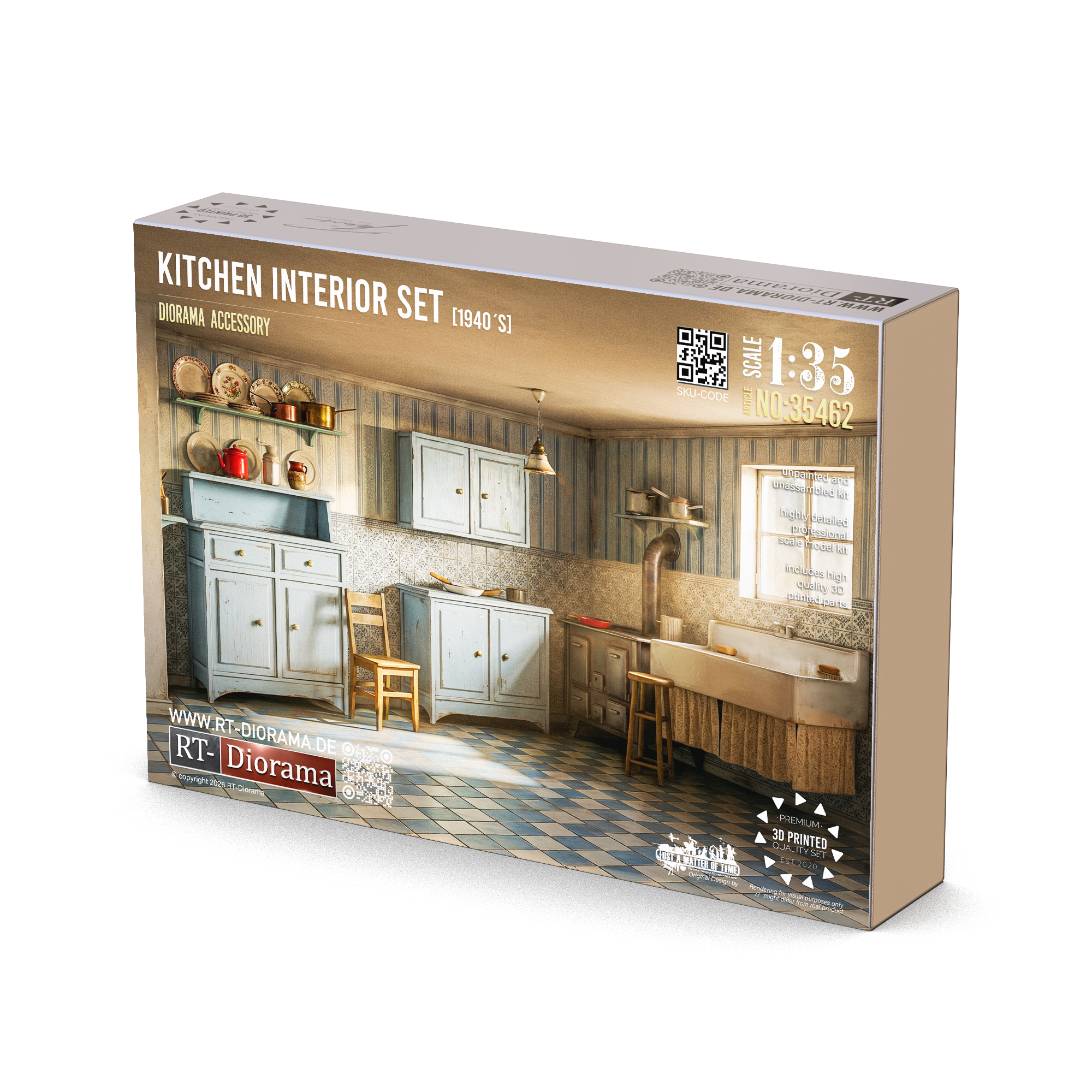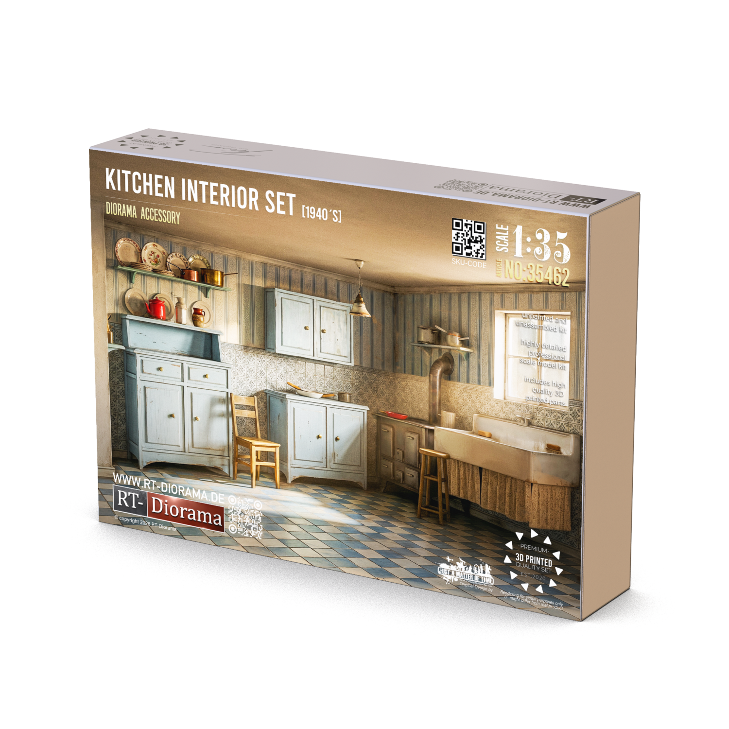Authentic 1940s kitchen furniture for 1/35 interiors — packed with domestic character, period charm and highly detailed storytelling potential.