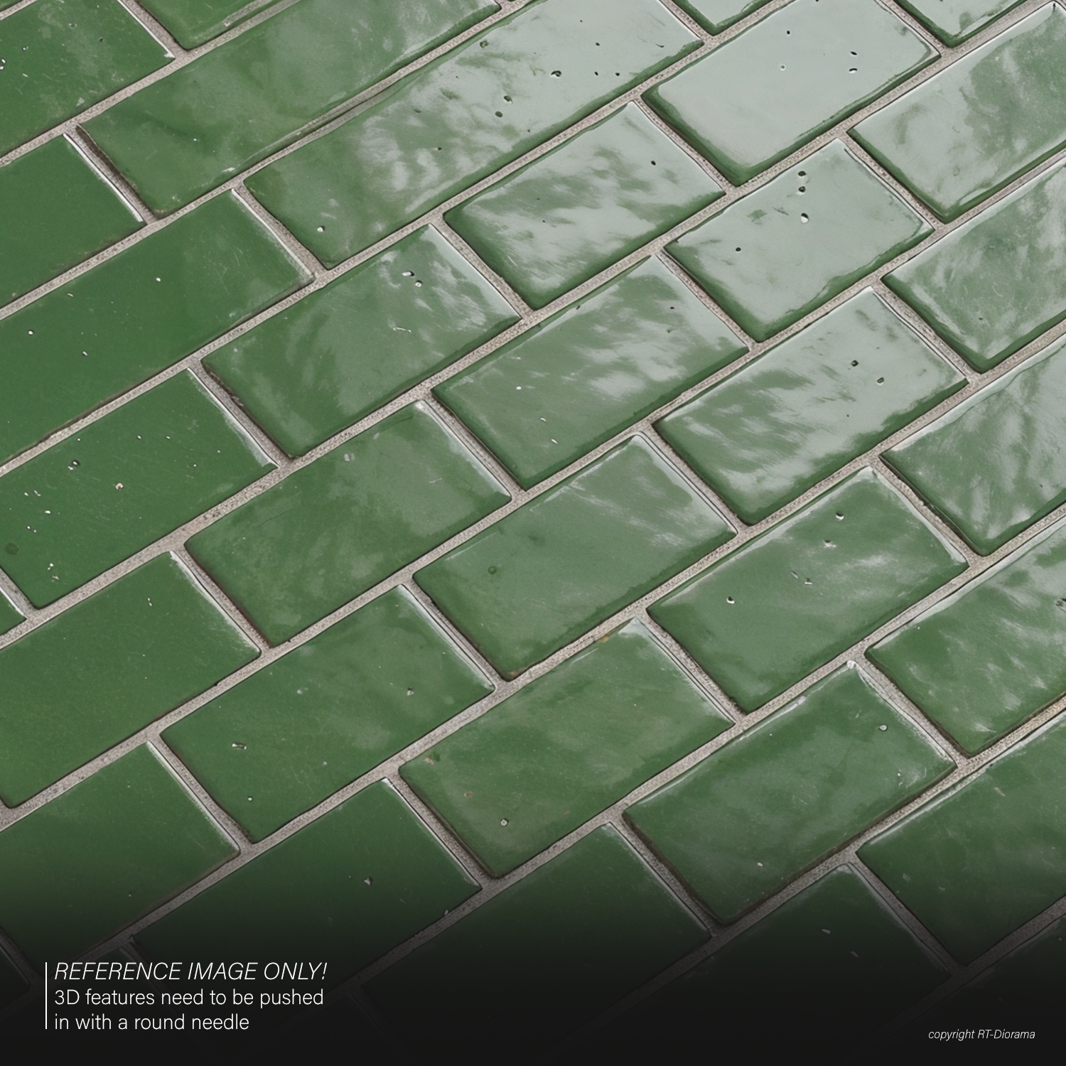 Authentic emerald glazed tiles for realistic miniature interiors and diorama surfaces.